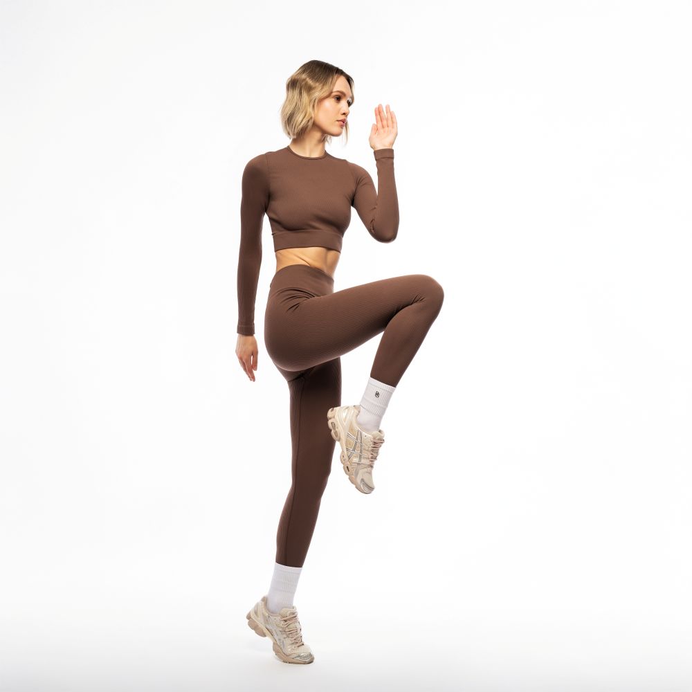 Crop-top reiat cu mânecă lungă din capsula Perfect body - îmbrăcăminte confortabilă pentru un stil de viață activ și de zi cu zi. Top este confecționat din microfibră texturată de înaltă densitate și elasticitate medie. O cusătură interioară trece de-a lungul mânecii. Pentru o utilizare mai confortabilă, gâtul rotund și puțin adânc este completat de o margine elastică. Pentru o fixare sigură , având o bandă elastică densă cu o textură reiată, care trece de-a lungul părții de jos. Combinați crop-top cu leggings din aceeași capsulă pentru look-uri monocrome sau combinați cu leggins din capsula Flat harmony pentru look-uri accentuate.
