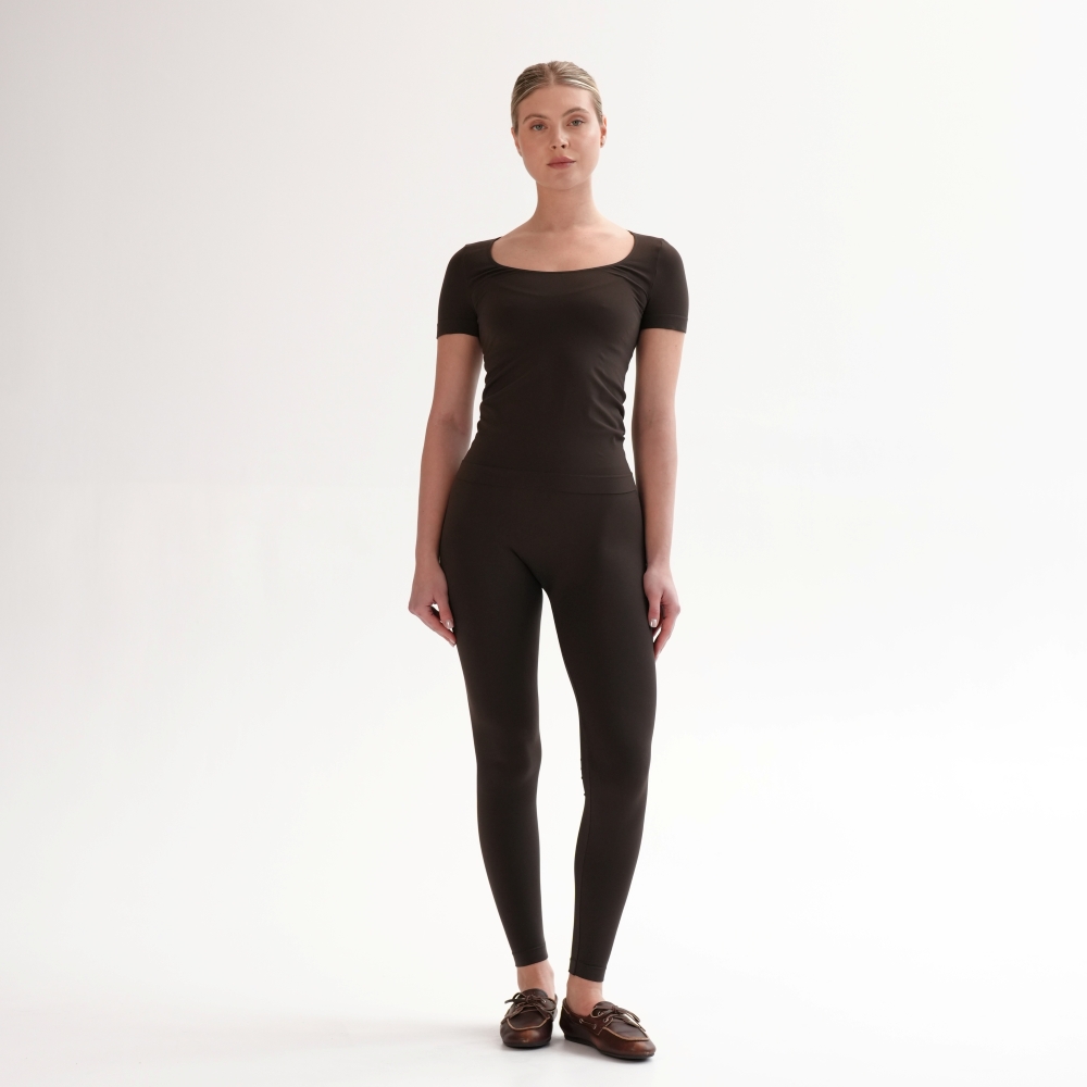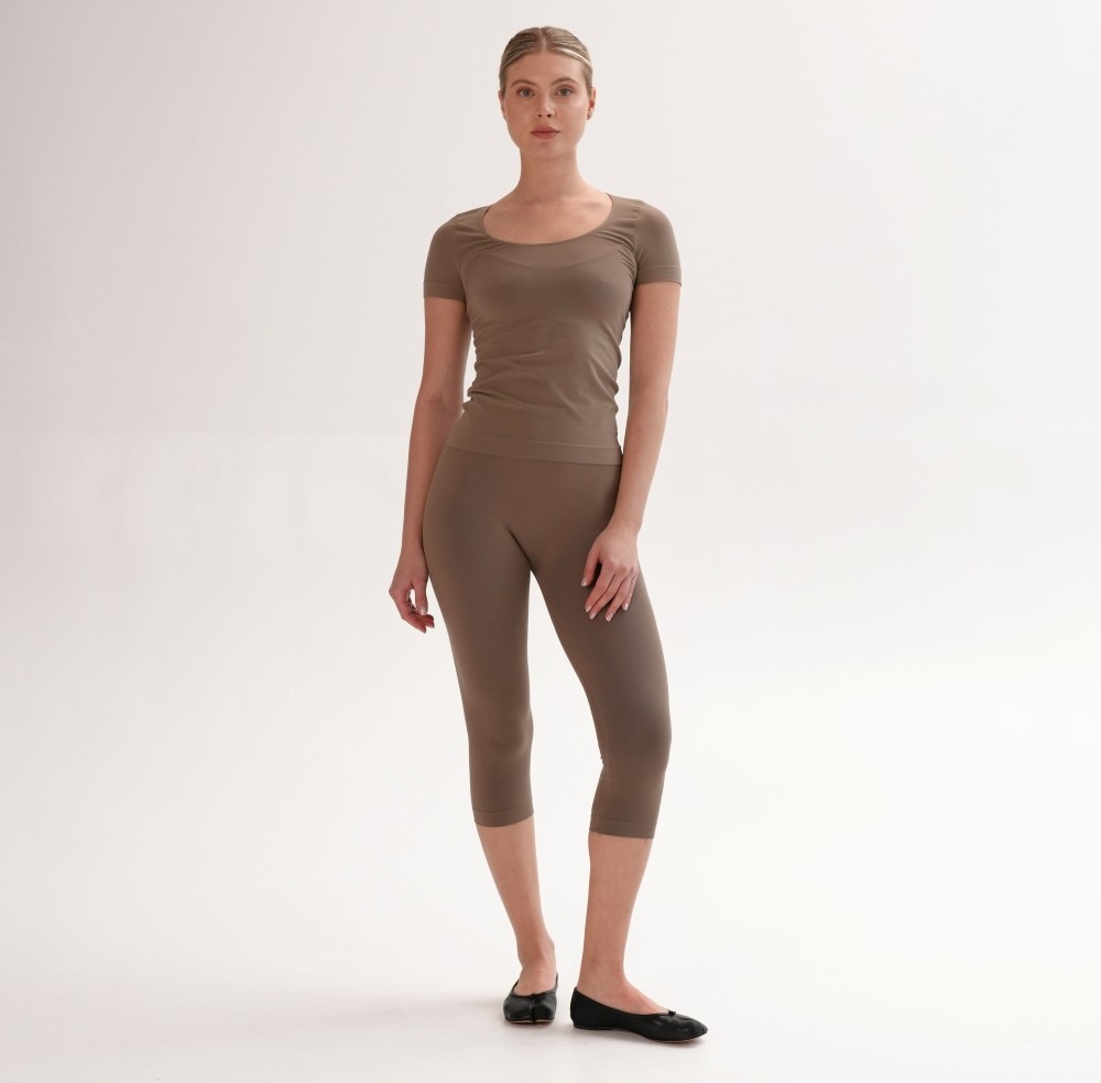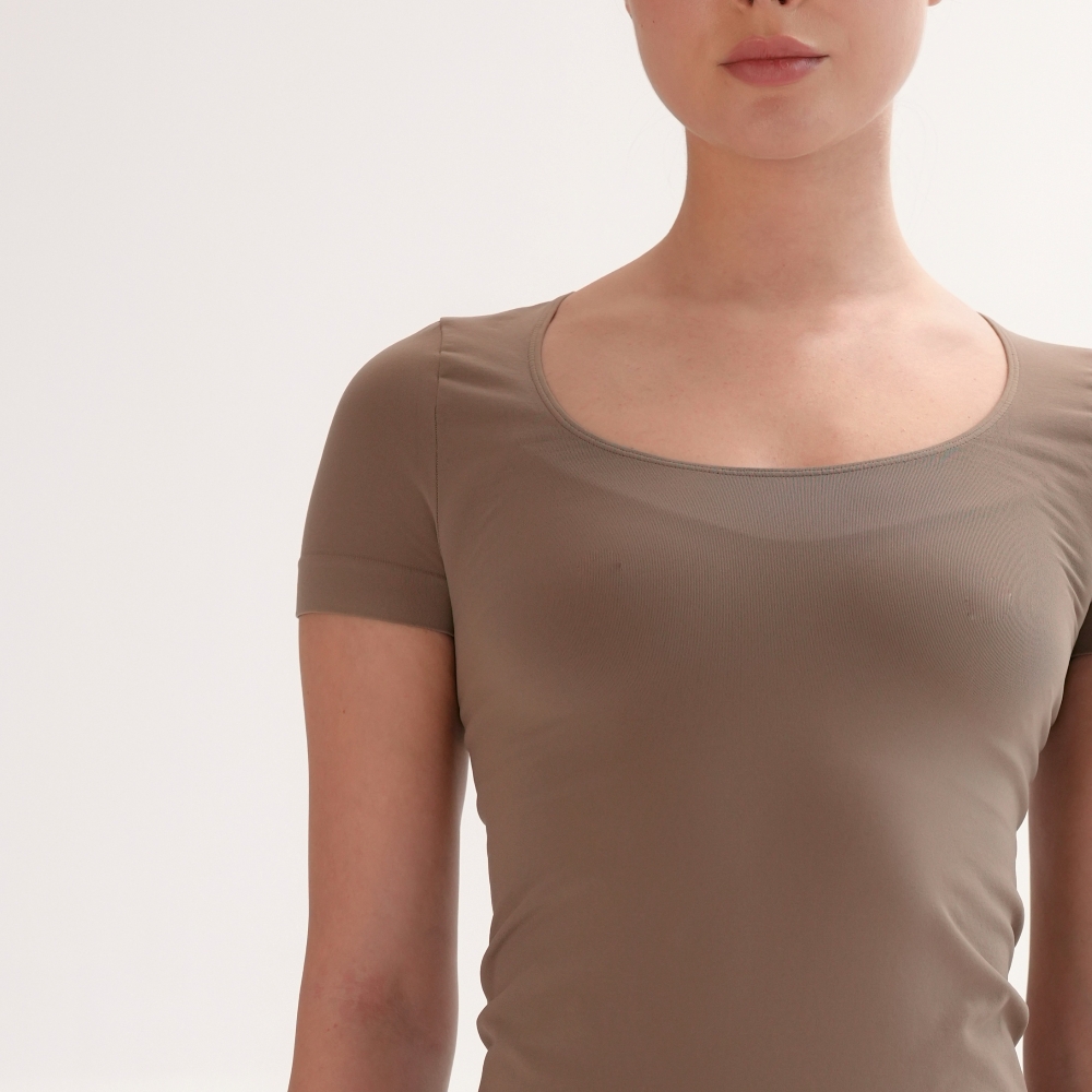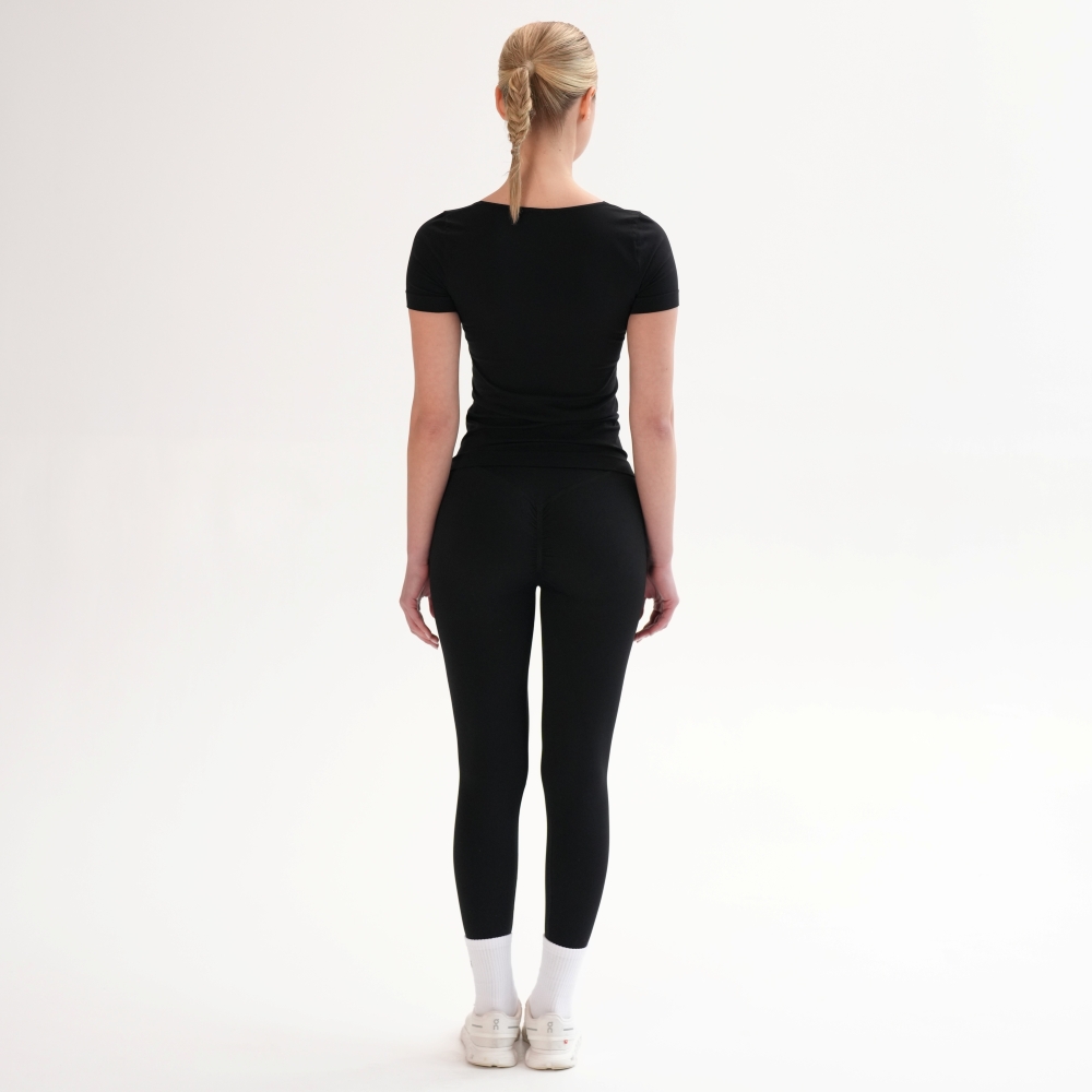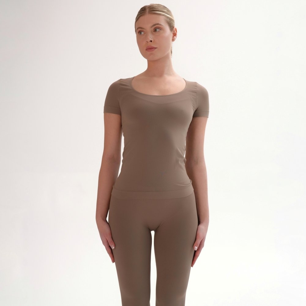 Tricoul de bază din microfibră moale și delicată îți oferă confort și lejeritate în fiecare zi. Croiala fără cusături laterale -seamless, decolteul rotund adâncit și materialul elastic care urmează linia corpului fac din el piesa esențială pentru orice garderobă. Combinaţi cu leggings din capsulele Flat Harmony pentru un look monocrom sau din Rib Perfection pentru combinații pline de stil.